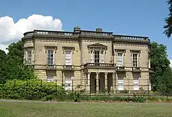 Meanwood Hall is a grade II listed building. It was built about 1762 for Thomas Denison, extended in 1814 for Joseph Lees, and further developed in 1834 for Christopher Beckett. In 1919 it was bought by the city council to form the nucleus of Meanwood Park Hospital which accommodated men, women and children with learning disabilities. It served the city of Leeds and other areas of the West Riding of Yorkshire, and at its maximum extent in the 1960s had 841 beds. After the hospital closed in 1997, the hall was converted to housing, and further housing developments now fill the hospital grounds.[10][11]