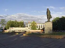 Opticians' Square in Krasnogorsk, with KMZ buildings in the background