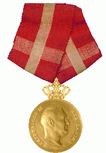 | Next (higher) | Cross of Honour of the Order of the Dannebrog (Gold Medal) Medal of Recompense in Gold (Silver Medal) |