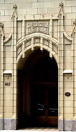 The Medical Arts Building is an office high-rise located at 603 Main Street in Knoxville, Tennessee, United States. Completed in 1931, the 10-story structure originally provided office space for physicians and dentists, and at the time was considered the "best equipped" medical building in the South. The building has been listed on the National Register of Historic Places as one of the region's best examples of a Gothic Revival-style office building.[2] It has recently been renovated into mixed-use, principally residential use.