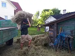 Until the early 21st century most Medininkai villagers lived either exclusively or mostly off agriculture. Today there are still many households depending upon agrarian jobs, usually related to cereal and forage type of cultivation.[150] Animal husbandry is in decline, and a cow or a horse on Medininkai pastures is becoming sort of a rarity. Many households still keep small gardens, orchards or cultivated plots, but usually for own consumption and only with minor or no part of the production intended for sale; the same applies to poultry and pigs. Single enterprises rely on activities which target the Vilnius consumer market, e.g. cultivating and trading in flowers.