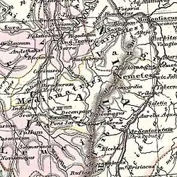Before the Roman conquest (57 BC), the territory of the Mediomatrici comprised the upper basins of the rivers Maas, Moselle and Saar, and extended eastwards as far as the Rhine in the mid-first century BC.[9][10] Ptolemy places them south of the Treviri, between the Remi and the Leuci.[11]