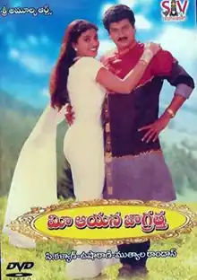 Mee Aayana Jagratha (transl. Take Care of your Husband) is 1998 Indian Telugu-language comedy film directed by Muthyala Ramadas, with Vallabhaneni Janardhan's direction supervision. It stars Rajendra Prasad and Roja, with music composed by Koti and Vinayak Rao. It was produced by Usha Rani, C. Kalyan under the Sri Amulya Art Productions banner. The film was recorded as a flop at the box office. The movie was a loose adaptation of the 1975 Tamil movie Yarukku Maappillai Yaro.