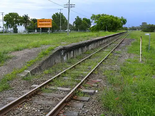Meeandah railway station is an abandoned station on the Pinkenba railway line in the suburb of Pinkenba, City of Brisbane, Queensland, Australia. It is 8.7 kilometres (5.4 mi) from the Brisbane central business district and 13.4 kilometres (8.3 mi) from Central station by rail. It closed as a staffed station in 1930, reopened as an unattended gate in 1931, and was finally closed on 27 September 1993.