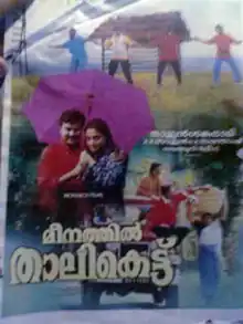 Meenathil Thalikettu (transl. Wedding in Meenam) is a 1998 Indian Malayalam-language comedy drama film directed by Rajan Sankaradi and written by A. K. Sajan and A. K. Santhosh from a story by Lal Jose. It stars Dileep, Tejali Ghanekar, Thilakan, Zeenath, and Jagathy Sreekumar. The plot follows Omanakkuttan, a 23-year-old, who is still in high school, who has to marry his friend's sister, Malu, under pressure.