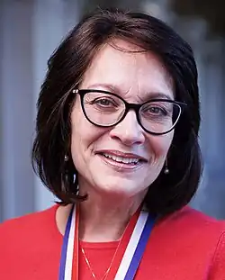 Meg Medina is an American children’s book author of Cuban descent whose books celebrate Latino culture and the lives of young people. She served as the 2023–2024 National Ambassador for Young People’s Literature.[2] Medina is the recipient of the 2019[3] John Newbery Medal for her middle grade novel, Merci Suárez Changes Gears and the Pura Belpré Award for Yaqui Delgado Wants to Kick Your Ass (2014) and the Pura Belpré Award Honor Book in 2016 for Mango, Abuela and Me).