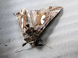 Stephens' gem or the bilobed looper (Megalographa biloba) is a moth of the family Noctuidae. It is widely distributed from the southern parts of the United States, south through Central America and South America to Argentina.