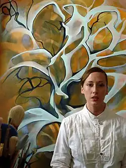 Megan Olson is an American painter born in 1971.[1] She was raised in rural Connecticut, and has lived in Los Angeles, San Francisco, San Diego, New York, and Berlin.[2] She currently works out of her studio on the Lower East Side of New York City.[2] Olson received her BFA from the San Francisco Art Institute in 2002,[3] and was discovered by Maxwell Davidson Gallery while attending the AICAD New York Studio Residency Program.[2] Olson is a member of American Abstract Artists.[4]