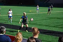 In October 2011, Rapinoe signed with Australian W-League team Sydney FC as a guest player for two games.[53] In her second game against Melbourne Victory, she scored with seven minutes remaining to seal three points for Sydney.[54] The win was the first for Sydney during the 2011–12 season.[55] Sydney FC went on to finish third in the regular season[56] and advanced to the playoffs where they were defeated by Brisbane Roar in penalty kicks.[57]