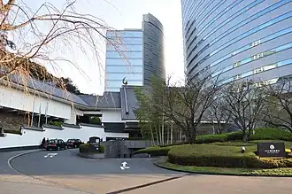 The original building, featured in Osamu Dazai's novel Kajitsu (佳日), was demolished except for the Hyakudan Kaidan (One Hundred Steps), which has been incorporated into the new building complex. The current complex is largely the result of an 85 billion yen (approximately 700 million dollars at the time) renovation completed in 1991. Designed by Nikken Sekkei and Kajima, much of the ornamentation and artwork, or in some cases whole rooms from the old building were preserved and integrated into the new structure.[4]