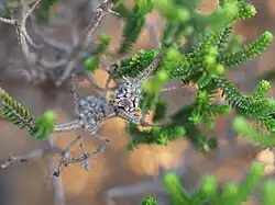 Melaleuca araucarioides is a plant in the myrtle family, Myrtaceae and is endemic to a small area of the south-west Western Australia. It is a many-branched shrub with the leaves arranged in a way that gives the plant the appearance of a conifer.