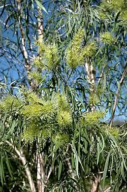 Melaleuca argentea is known as mardderr in the Kunwinjku language[4] and kumardderr, (the Goomadeer River) means "at the silver-leaved paperbark" and takes its name from this tree.[8]