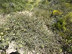 This melaleuca occurs in the Geraldton and Ajana districts[2] in the Geraldton Sandplains biogeographic region.[8] The plants grow in scrub and low heath in sandy or gravelly clay loam.[2]