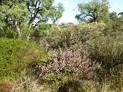 Melaleuca tuberculata occurs in the Avon Wheatbelt, Esperance Plains, Jarrah Forest and Mallee biogeographic regions.[7] It grows in a variety of soils over ironstone or laterite, on undulating plains and high areas.[8]