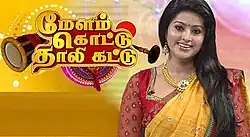 Melam Kottu Thali Kattu is an Indian Tamil-language reality television show, broadcast on Puthuyugam TV from 2013 to 16 April 2014 aired every Saturday and Sunday 8 PM IST and Season 2 aired every Saturday 8 PM IST.[1] It is meant for unmarried women. It includes a seven-round quiz competition with prizes such as gold and other articles required for marriage. The show is presented by actress Sneha. It also airs in Malaysia Tamil Channel on Astro Vaanavil.