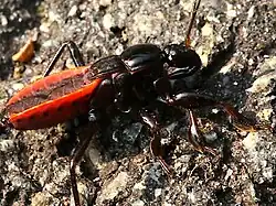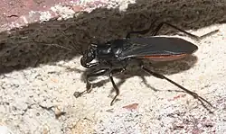 Melanolestes picipes, known generally as the black corsair or black May beetle-eater, is a species of corsair in the family Reduviidae. It is found in Central America, North America, Oceania, and South America.[1][2][3]