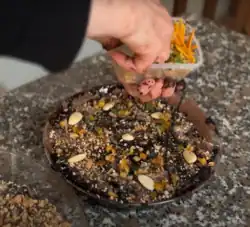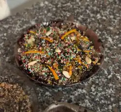 In some modern preparations, a lighter dessert is made by baking, boiling, poaching or grilling the eggplant.[3] Alternative fillings include ricotta or sponge cake, and Jordan almonds have been used as a topping.[1] Because the dish takes a long time to prepare, melanzane al cioccolato is almost always homemade and rarely sold commercially.[1][4]