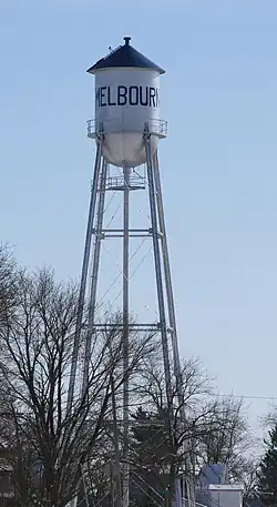 The town of Melbourne was platted February 23, 1882, by Milwaukee Land Company, in section 6 of Logan Township and was incorporated December 30, 1895.[4][5] Melbourne was the only town in Marshall County to be served continuously by two major railroads.[6] Melbourne's growth was rapid and made possible by three railroads and the population increased to 423 by 1910. Melbourne suffered the worst disaster in the town's history when a fire consumed the whole business district in 1903; then in 1981 the southern end of town was destroyed by a tornado.[6]