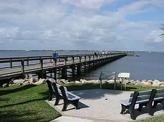 The Melbourne Beach Pier is a historic pier in Melbourne Beach, Florida, United States. It is located at Ocean Avenue and Riverside Drive and the pier extends onto the Indian River. The Melbourne and Atlantic Railroad Company built the pier in 1889. On April 12, 1984, it was added to the U.S. National Register of Historic Places.