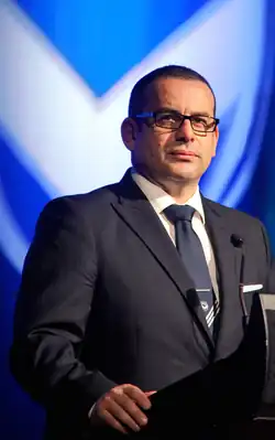 The conclusion of the 2010–11 A-League season saw inaugural president Geoff Lord resign from the club, hailing from the success of two championships, two premierships and the last pre-season challenge cup. Fruit and vegetable heavyweight and shareholder Anthony Di Pietro became the second president in the club's history, hired internally after being an inaugural director alongside Lord from the beginning. Di Pietro was also an occasional stand-in president when Lord was unable to perform duties due to illness on multiple occasions in 2011, making his first public speech ever being stand in chairman at the time during a Victory in Business luncheon at the Crown Palladium Ballroom. Along with the resignation of Lord, inaugural chief executive officer Geoff Miles also resigned from the club, with mortgage firm businessman, shareholder and inaugural director Richard Wilson being hired internally prior to the 2011–12 season alongside Di Pietro. Ernie Merrick would depart as coach after Di Pietro & Wilson quickly sacked Merrick following multiple missed targets both on & off the field, with the 5–1 loss to Gamba Osaka in the 2011 AFC Champions League campaign being the last straw.[27] Merrick would be replaced by Mehmet Duraković[28] and later Jim Magilton[29] for the 2011–12 season.[30][31][32] Kevin Muscat had announced during the respective season that he would retire as a player, and immediately became an assistant coach replacing Aaron Healy. Along with Merrick & Healy's departures would be inaugural director of football Gary Cole, and would be replaced by former team South Melbourne and Socceroo teammate, Francis Awaritefe.[33]
