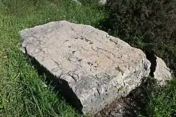The courtyard of the Tomb of Helena of Adiabene was originally a meleke stone quarry, and the staircase once a ramp upon which the blocks extracted were hauled.[11] Of the four types of limestone found in the Jerusalem region, two were used in building during the Islamic period in Palestine: meleke and mizzi, the latter being a harder stone, also known as "Palestinian marble".[12] The meleke stone has been used extensively in the construction of tanks, underground chambers, tombs, &c. because of its softer nature,[13] and since it resembles marble in appearance when it is polished, Italian architect and engineer, Ermete Pierotti, surmised that it was probably called by the name of "marble" in former times.[14]