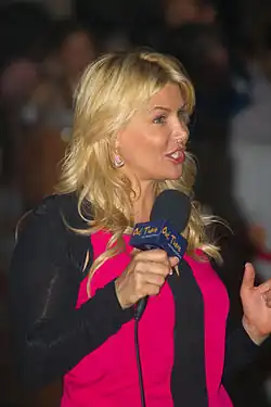 Since 2004, DiMarco has hosted the Out There with Melissa DiMarco television comedy which airs on Citytv's national network and The Biography Channel.[5] Excerpts from DiMarco's celebrity interviews also air on OUTtv.[6] The show mixes celebrity interviews with scripted comedy that takes a behind-the-scenes look at the life of an entertainment journalist (played by DiMarco). Among the celebrities she has interviewed on the show are Pierce Brosnan, George Clooney, Cameron Diaz, Colin Farrell, Salma Hayek, Queen Latifah, Ludacris, Matthew McConaughey, Brad Pitt, and Gene Simmons.[7] Updates and excerpts from these interviews are syndicated internationally. Out There has been recognized for Outstanding Achievement in Creative Excellence at the 39th U.S. International Film and Video Festival.[8]
