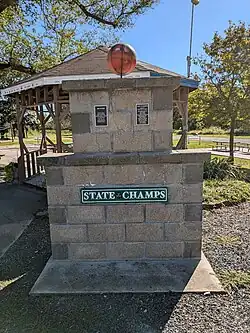 Walt O'Connor and Jim Thynne from the 1937 team and Donald Knowles, a 1942 Melrose graduate, were inducted into the Iowa High School Athletic Association Hall of Fame.[14] In March 2012, the Iowa High School Athletic Association inducted Coach Ad Hlubek into the Hall of Fame as a coach.[14] In May 2012, the Iowa House of Representatives officially congratulated the 1937 Melrose Shamrocks basketball team on the 75th anniversary of their championship.[15] The resolution recounted the accomplishments of the 1937 team and encouraged "all Iowans to follow its example in striving to accomplish goals that seem impossible." In late 2012, the city of Melrose, erected a monument in the center of town honoring the 1937 basketball team and its selection in a Des Moines Register poll as the top team in the first 100 years of boys’ basketball in Iowa.