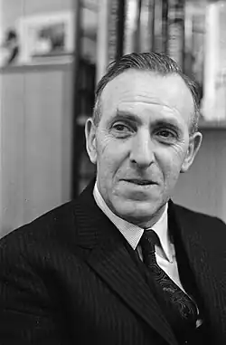 During the Second World War, Melville Richards was attached to Bletchley Park. His name is listed on the Bletchley Park roll of honour with the grade of FO (Foreign Office) civilian; he served at Bletchley Park between 1941-1945 in Hut 9A, Elmers School, Hut 18 and Block G, ISOS (Illicit Service Oliver Strachey.[4] ISOS was responsible for Abwehr communications using manual codes and ciphers.[5] He used his experiences at war to write his only novel Y Gelyn Mewnol (The Enemy Within), an espionage story set in West Wales which won the Bangor National Eisteddfod thriller novel competition in 1943.[6] The novel tells the story of a British Secret Service operation to frustrate a fictitious German Fifth Column action in West Wales. The plot involves a Welsh-speaking British Secret Service agent with a background somewhat similar to Melville Richards himself. It features documents recovered from a U-boat sunk by the RAF in Cardigan Bay and the solution of a cryptogram intercepted by MI5. The novel was published in book form by Llyfrau'r Dryw in 1946.[7]'