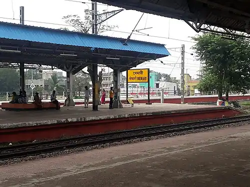 Memari railway station is a Kolkata Suburban Railway station on the Howrah–Bardhaman main line operated by Eastern Railway zone of Indian Railways. It is situated beside National Highway 2 at Memari, Purba Bardhaman district in the Indian state of West Bengal.[1] Number of EMU and passenger trains stop at Memari railway station.[2]