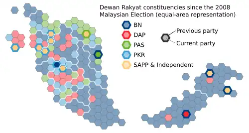 - ^ Chua was elected to Parliament on the ticket of the Barisan National, but SAPP officially withdrew from BN in September 2008 to become independent.