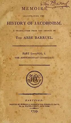 - ^ Abbé Augustin Barruel, Memoirs Illustrating the History of Jacobinism, (Hartford: Hudson & Goodwin, 1799), Vol. 1, vii.