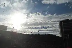 Fans at Memorial Stadium have released red helium balloons when Nebraska scores its first points since the 1960s, though the tradition was seen as early as 1932.[35] Global helium shortages and environmental concerns in recent years have threatened the tradition, which was paused in 2012 and 2022.[36]