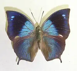 - Memphis pithyusa (R. Felder, 1869) – blue leafwing, pale-spotted leafwing[4]