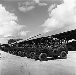 Suriname was a major producer of bauxite which is used to make aluminium, a vital resource for the aircraft industry. Between 1940 and 1943, Suriname supplied 65% of American imports of bauxite. On 1 September 1941, President Franklin D. Roosevelt made an offer to Queen Wilhelmina, to station 3,000 soldiers in Suriname.[1] The number of troops was later revised to 2,000 soldiers who started to arrive from November 1941 onwards.[2] To house the troops, land was bought from farmers near Paramaribo, and Kampement Gemenelandsweg was constructed. It would become the largest barracks in Suriname.[3]
