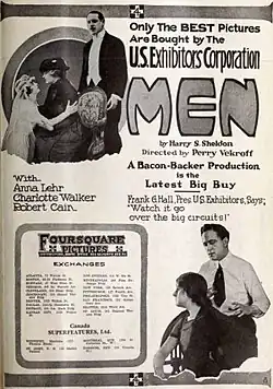 Men was a 1918 American silent drama film directed by Perry N. Vekroff based upon a play by Harry Sophus Sheldon.[1] It starred Anna Lehr, Charlotte Walker, and Robert Cain. It is considered to be a lost film.[2][3][4]