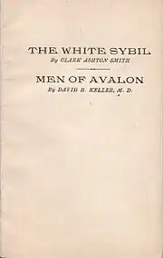 Men of Avalon / The White Sybil is an anthology of two fantasy stories. It was published by American company Fantasy Publications in 1935 in an edition of 500 copies. The anthology contains two stories that were submitted for the publisher's magazines, Marvel Tales and Unusual Stories, but were too long for magazine publication.