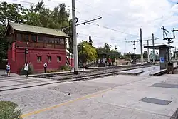 Mendoza station as a tram stop in 2015. The old semaphore signals are visible at background | |||||||||||