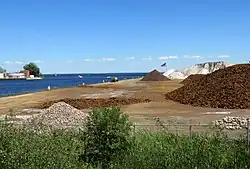 Unlike Marinette, which went comparatively unscathed the Peshtigo Fire of 1871 (although some buildings were burnt on its western border), Menekaunee was severely damaged by it. About fifty buildings burned down, including an extensive new sawmill, three stores, a flour mill, two hotels, and thirty-five houses. Several scows, nearly a million board feet of lumber, and a number of horses, cows and other animal, were burned. Clouds of burning cinders were driven across the river, and were showered upon the decks of vessels seven miles distant on Green Bay.[6]