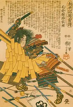 Menjō Katsuteru (毛受家照; died 1583), also known as Menju Katsusuke, was a general and retainer of Shibata Katsuie. As one of the Three Famous Swordsmen of the Battle of Shizugatake, he fought with outstanding valor until he was killed in battle.