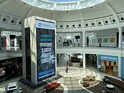 Menlo Park converted to a fully enclosed mall in 1967, the first in Central New Jersey.[13] Most of the mall was closed from 1990 to 1991, when it underwent a significant renovation and expansion that changed it from a single-story structure into its current two-story form.[14] In expanding and fitting into the space, the new Menlo Park Mall was built on an angle with the vertex occurring at center court. The renovated Menlo Park Mall was also changed to have galleria style skylights, domed fountain courts, marble flooring, dramatic lighting, sculptures and a large, skylit food court featuring trees and sculptures, designed to look like a formal garden. The new mall was designed by architecture firm RTKL Associates Inc. of Dallas, Texas. Two parking decks were also added, as was a 12-screen Cineplex Odeon movie theater which replaced the smaller Menlo Park Cinema on Route 1. Cineplex was later replaced by an AMC Dine-In Theater. Macy's was the only store to remain open during the primary expansion. Nordstrom officially opened to the public at Menlo Park Mall on September 27, 1991.[15]