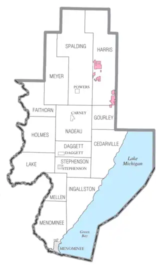 - ^ "2020 CENSUS - SCHOOL DISTRICT REFERENCE MAP: Menominee County, MI" (PDF). U.S. Census Bureau. Archived (PDF) from the original on August 2, 2021. Retrieved July 21, 2022. - Text list