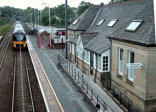 Menston railway station serves Menston in the City of Bradford, West Yorkshire, England. On the Wharfedale Line between Ilkley and Leeds/Bradford Forster Square, it is served by Class 331 and 333 electric trains run by Northern Trains, who also manage the station.
