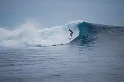 The first photos of the surf breaks in the Mentawais area were leaked after a surf trip in 1992 aboard the MV Indies Trader, with professional surfers Ross Clarke-Jones, Tom Carroll, and Martin Potter.[22] Ever since then, the Mentawai Islands have been well on the radar of surf travellers around the world. At the West of Sumatra, the Mentawai Islands have the most consistent surf breaks in Indonesia making it one of the preferred choices for serious surfers. The tropical waters surrounding the islands offer year-round waves up to 15 ft (4.6 m).[23][24]