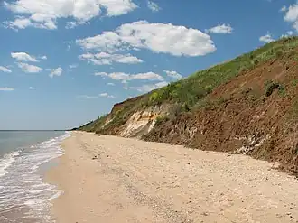 The Meotyda National Nature Park (Ukrainian: Національний природний парк «Меотида») covers a stretch of coastline, and interior estuaries and coastal lands, on the northern edge of the Sea of Azov in Ukraine. The administration of the park itself has been disrupted by hostilities in the area. Previously, the protected regions of the park supported important populations of migratory waterfowl and over 100 species of nesting birds. The current status of wildlife (as of 2018) depends on the varying levels of military activity in the park. Administratively, the park encompasses several subsidiary nature reserves and state lands, which retain their legal status.[1] The park is named for the Maeotians, an ancient people who lived on the Azov shores; ancient names for the Sea of Azov itself included Lake Maeotis and the Maeotian Sea. The park crosses several administrative districts, including Nikolske Raion, Novoazovsk Raion, and Manhush Raion in Donetsk Oblast