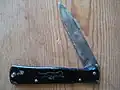 The Mercator K55K is a type of lock blade pocketknife produced in Solingen [ˈzoːlɪŋən] Germany.[1] Mercator brand knives were originally produced by Heinrich Kaufmann & Sons in Solingen, which operated from 1856 to 1995.[2] At introduction, the K55k was originally fitted with a different lock and a somewhat longer blade of approximately 100mm. The design was variously described by Kaufmann as a pocket knife (taschenmesser), dagger (dolchmesser), or hunting knife (jagdnicker), emphasizing its steel frame, strong safety lock, and solid no-frills worksmanship.[3]. The Mercator K55K is still produced in Germany under the Mercator brand, now a division of Otter-Messer GmbH.