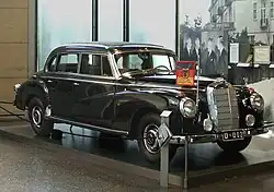 The W186 is often identified as an Adenauer after Konrad Adenauer, the first Chancellor of the Federal Republic of Germany (West Germany), who employed six custom cabriolet, hardtop saloon, and landaulet versions of the W186 and its successor W189 during his 1949-1963 tenure. Among the custom features in these "parade cars" were writing desks, sirens, curtains, dividing partitions, sunroofs, and half-roof "landaulet" configurations.