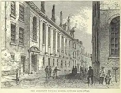The school was founded in 1561[1] by Thomas White of the Merchant Taylors' Company in a manor house in the parish of St Lawrence Pountney in the City of London, where it remained until 1875.