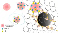 - ^ Shih YC, Ke CY, Yu CJ, Lu CY, Tseng WL. Combined tween 20-stabilized gold nanoparticles and reduced graphite oxide-Fe3O4 nanoparticle composites for rapid and efficient removal of mercury species from a complex matrix. ACS Applied Mater Interfaces 2014 October 22; 6(20): 17437-17445.