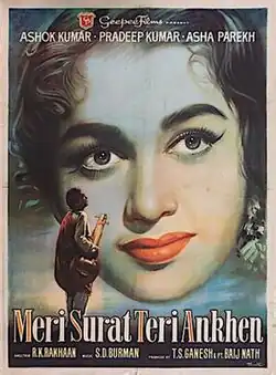 Meri Surat Teri Ankhen (transl. My Face, Your Eyes) is a 1963 Bollywood drama film directed by R.K. Rakhan,[1] starring Ashok Kumar, Asha Parekh and Pradeep Kumar.[2] It is based on the Bengali novel Ulka by Nihar Ranjan Gupta.[3]