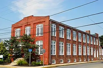Built in 1916, this historic structure is a two-story, rectangular, brick building measuring 40 by 100 feet (12 by 30 m). It was added to the front of an earlier wood-frame building, which was later replaced with a two-story, irregularly-shaped brick structure that was erected in 1928. A two-story, brick addition was built in 1921. The addition measures fifty-two feet by seventy-one feet. The building was occupied by garment manufacturers into the 1990s.[2]